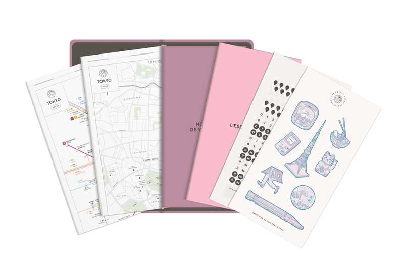 Ce carnet contient : une pochette à rabats, une carte de la ville, un plan du métro, un carnet d’essentiels de 16 pages, un carnet de notes uni de 64 pages, une pllanche de stickers utiles, une planche de stickers décoratifs.