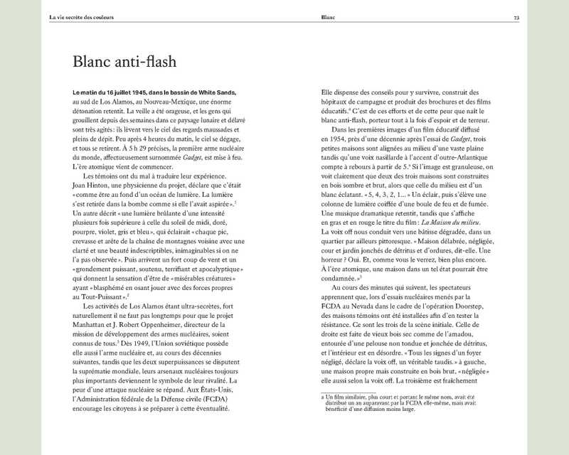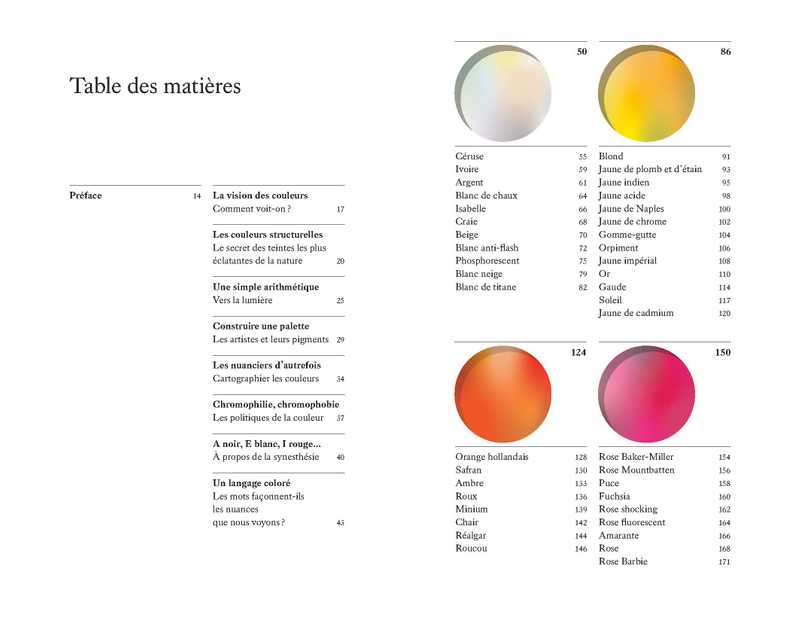 Du brun qui changea la façon dont les batailles étaient livrées au blanc de chaux qui protégeait contre la peste. Du jaune de chrome des tournesols de Van Gogh au vert Kelly du Saint-Patrick irlandais. Du rouge vermillon des fresques pompéiennes au rose Baker-Miller qui devait réduire comme peau de chagrin l'agressivité des détenus. De la période bleue de Picasso au pur Vantablack en passant par le rose Barbie réapproprué par le féminisme.